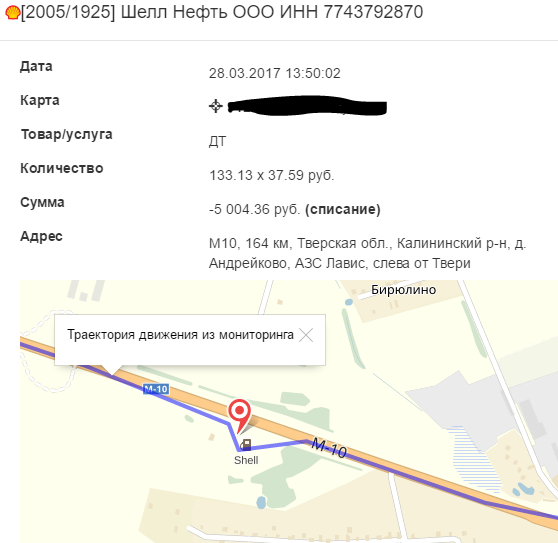 - Выявлять подозрительные операции списания с топливной карты при сравнении параметров транзакции по карте и данных системы мониторинга.